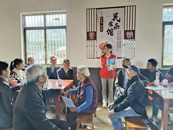 “民生茶館”文明實踐項目是由曹王村新時代文明實踐站發(fā)起,實施于2021年12月。該項目主要針對曹王村鄰里之間土地流轉(zhuǎn)、鄰里糾紛、老人贍養(yǎng)等常見矛盾,每周由村“兩委”干部、鄉(xiāng)賢能人、退休老干部等輪流以志愿者身份,與村民同坐長板凳,同喝暖心茶,零距離服務對話。村民在輕松愉悅的氛圍中,暢所欲言,從點滴中搜集社情民意,了解意見建議,為村民排憂解難。
