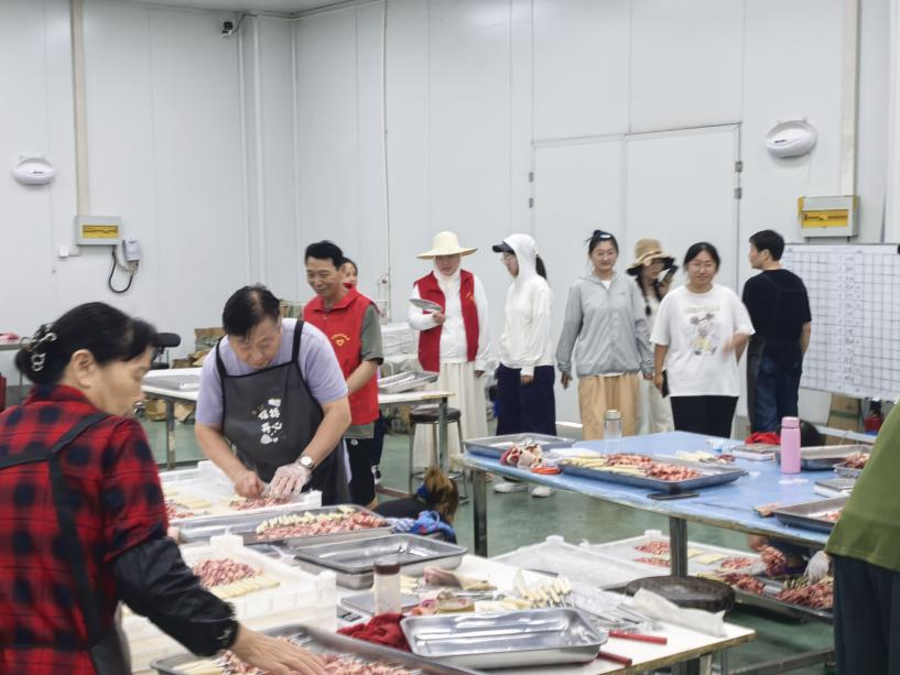 活動首站來到黃墩村新時代文明實(shí)踐站。志愿者向同學(xué)們詳細(xì)介紹了實(shí)踐站的功能區(qū)域、活動開展情況以及蘊(yùn)含的文明理念。離開實(shí)踐站后,隊伍前往禾森食品有限公司。走進(jìn)公司生產(chǎn)車間,干凈整潔的環(huán)境和有序的生產(chǎn)流程讓同學(xué)們眼前一亮。公司負(fù)責(zé)人熱情地向同學(xué)們介紹了食品生產(chǎn)的原料選擇、加工工藝以及質(zhì)量檢測等環(huán)節(jié),還現(xiàn)場展示了部分產(chǎn)品的制作過程。
