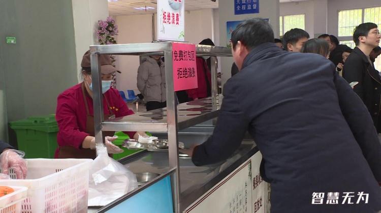 “光盤行動,反對浪費。 我們食堂做出了以下措施,第一就是免費加飯,按需取餐。第二就是剩菜剩飯免費打包。第三就是光盤行動,全程監督,第四我們對光盤行動者免費獎勵一個水果?!闭程媒浝砹_宣芳說到。