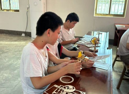 在工作人員和志愿者的指導下,孩子們開始動手組裝風扇,小朋友們按照圖紙步驟,逐步操作拼接、安裝螺絲、整理電線、組裝風扇和電機、學習電路連接知識,大家交流制作流程和心得體驗,在組裝過程中強化溝通,增進彼此友誼。在小朋友們的巧手下,一個個風扇制作完成,孩子們體驗著小風扇帶來的涼爽。