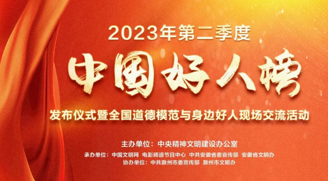 2023年第二季度“中國好人榜”發布儀式暨全國道德模范與身邊好人現場交流活動,將于9月22日在安徽省滁州市舉辦。屆時,中國文明網、電影頻道節目中心、“學習強國”學習平臺、人民網、新華網、光明網等多個平臺將同步全程直播,網友們可以點擊下方直播預約,屆時收看。