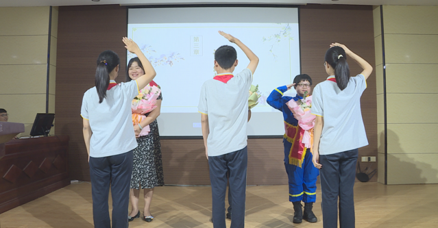 談感悟。“談感悟”環節,三位同學結合生活和學習,暢談感想體會。通過身邊好人講述身邊好事,身邊好事教身邊人來引導大家“積小善為大善”、“積小德為大德”,自覺成為道德模范的傳播者和踐行者,紛紛表示,向身邊好人學習,爭做公民道德的踐行者、文明風尚的傳播者,從身邊做起,爭做新時代好少年。