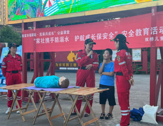 社區邀請曙光救援隊現場為青少年現場詳細演示講解防溺水自救互救知識,救生圈使用技巧、救生衣穿戴要領以及心肺復蘇、人工呼吸操作方法,掌握基本自救互救和逃生方法。