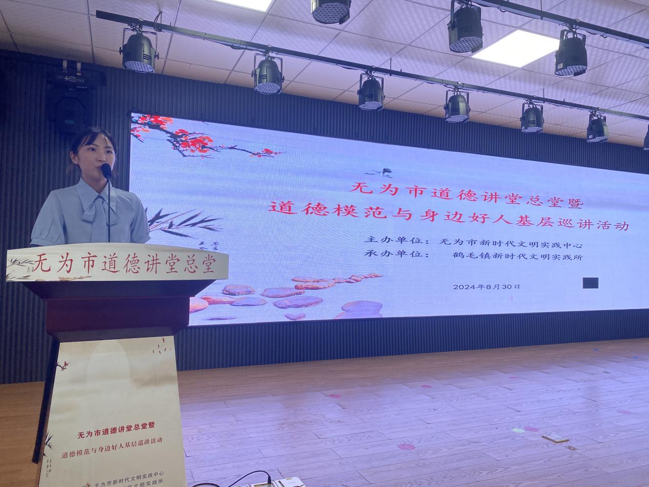 8月30日下午,無為市2024年第6期道德講堂總堂暨道德模范與身邊好人基層巡講活動在鶴毛鎮新時代文明實踐所舉辦。市文明辦、鶴毛鎮政府機關干部及各村(社區)群眾共80余人參加活動。