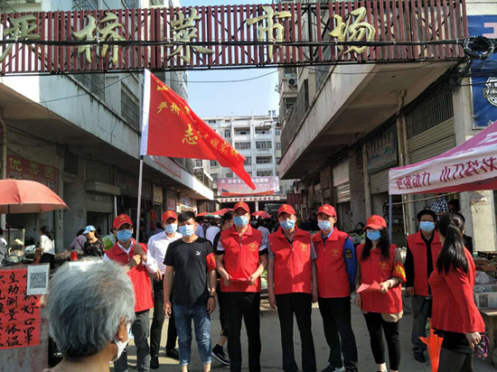 ?。翟拢保比丈衔?,位于無為市嚴橋鎮集鎮農貿市場門口,一群穿著紅馬甲的志愿者在這里集結,嚴橋鎮新時代文明實踐所正式啟動“開啟紅五月、創文在路上”文明創建志愿服務活動,營造“人人知曉、全民參與”的創建氛圍。