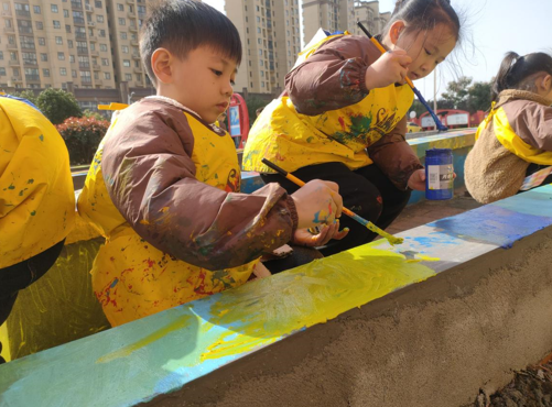 迎著朝陽,踏著晨曦。幼兒園老師帶領孩子們來到雙橋社區兒童種植體驗區,伴隨著歡聲笑語,大家抵達目的地。活動開始前,工作人員首先介紹了活動的場地和安排以及安全注意事項,確保孩子能夠安全、有序地開展活動;隨后,我們先給每個孩子分發了畫筆、染料和調色板。緊接著給孩子們介紹涂鴉的步驟、顏色搭配、繪畫技巧和注意事項等相關知識,指導他們對種植體驗區里的四個花槽進行涂鴉繪畫,孩子們聽得津津有味,拿著手里的畫筆躍躍欲試。最后,在老師和工作人員的帶隊下,孩子們紛紛拿起畫筆,充分發揮自己的想象力和創造力,用色彩勾勒出自己心中的圖案,原本單調的墻體搖身變成了雙橋社區內一道別樣的風景線。一筆一畫繪文明,一墻一隅畫美景,孩子們用手中的畫筆和五彩斑斕的顏料描繪出他們心中的兒童美好空間。