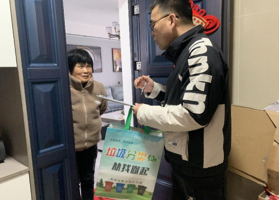 活動(dòng)開始,社區(qū)志愿者拿著宣傳冊(cè)和印有分類知識(shí)的宣傳袋,挨家挨戶上門,通過這種心貼心肩并肩的方式,把環(huán)保意識(shí)落實(shí)到每位群眾身上。讓大家知道做好垃圾分類不僅是我們的義務(wù),更是一種健康的生活習(xí)慣,是可以造福子孫后代的環(huán)保理念。居民劉奶奶拿著宣傳袋開心地說道,一定會(huì)努力遵循這個(gè)好活動(dòng),還要帶動(dòng)家人朋友一起,做保護(hù)環(huán)境的好市民。