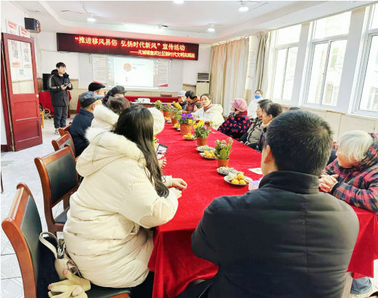 為進(jìn)一步培育和踐行社會(huì)主義核心價(jià)值觀,倡導(dǎo)文明新風(fēng)尚,持續(xù)加大移風(fēng)易俗宣傳力度。12月25日,無(wú)城鎮(zhèn)皇武社區(qū)新時(shí)代文明實(shí)踐站聯(lián)合社區(qū)物業(yè)辦開(kāi)展“推進(jìn)移風(fēng)易俗 弘揚(yáng)時(shí)代新風(fēng)”宣傳活動(dòng)。