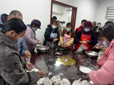 活動現場,大家分工明確,你和面、我包餡,熱鬧非凡。“湯圓餡不要弄太多,面要多搓一會……”居民王阿姨開心地向在場的大家傳授包湯圓的經驗。大家一起揉面團,放餡料,搓捏成型,在大家的共同努力下,不一會的工夫,湯圓似大珠小珠落玉盤般齊齊亮相,大家在歡聲笑語中一邊包著湯圓,一邊探討著元宵節習俗及元宵美食,互相交流著搓湯圓的心得,現場一片其樂融融,為元宵節加上了滿滿的“儀式感”。