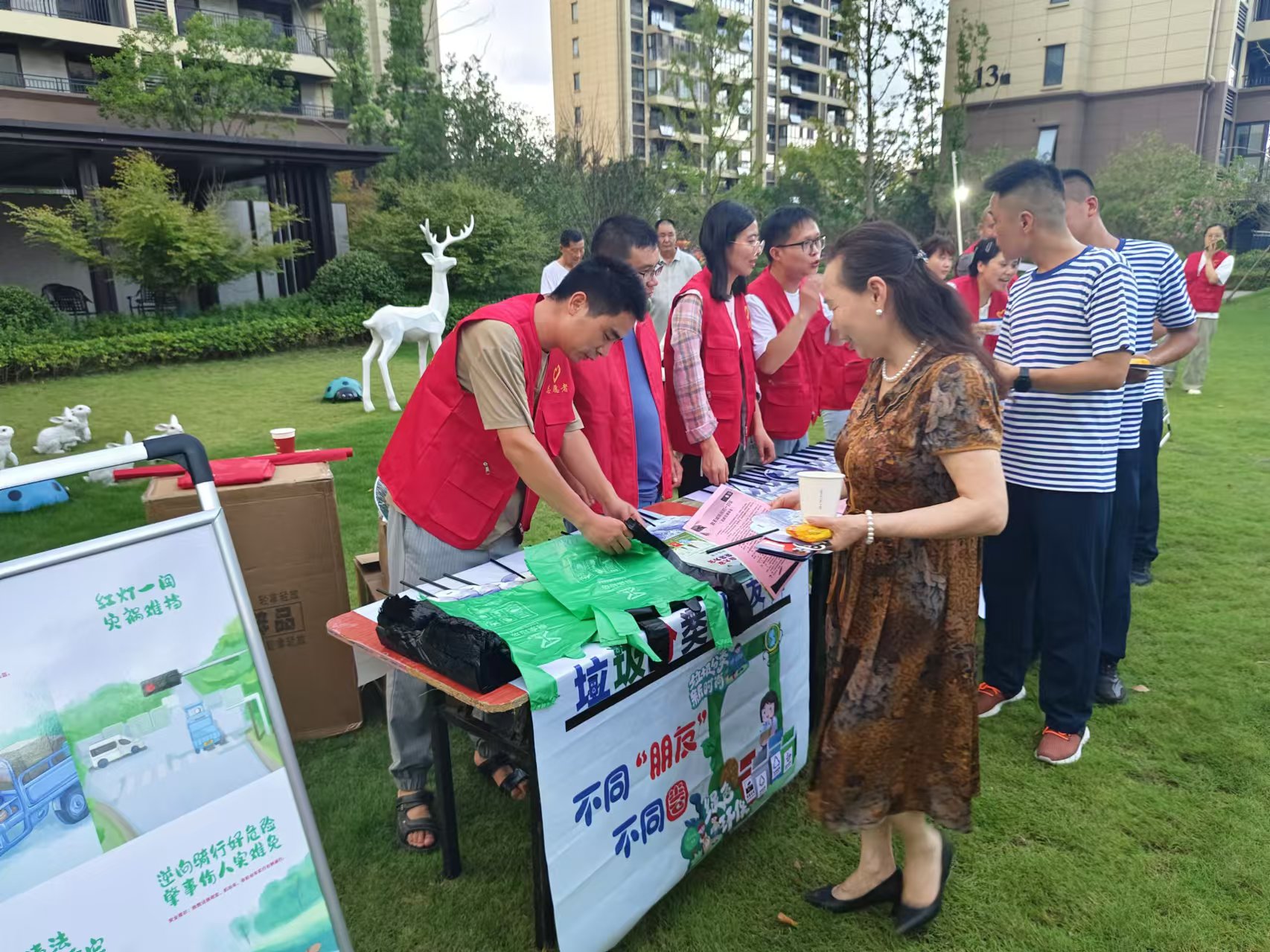 活動現場,花渡社區精心布置了宣傳區域,通過向居民發放垃圾分類宣傳手冊和垃圾袋的方式,呼吁居民們要從自身做起,從點滴小事做起,養成垃圾分類的好習慣。在宣傳過程中,社區工作人員耐心地為居民們講解垃圾分類的知識,從為什么要分類、如何分類到分類后的處理流程,一一進行了詳細地說明。還特別強調了垃圾分類對于保護生態環境、促進資源循環利用的重要意義。