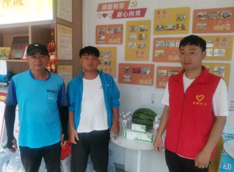 志愿者們身著統(tǒng)一的服裝,面帶微笑,將礦泉水、西瓜,藿香正氣水等解暑物品遞送到每一位前來領(lǐng)取的戶外勞動者手中,并囑托他們注意防暑降溫,外賣配送員他們都在這一刻感受到了來自社區(qū)的關(guān)懷與尊重。